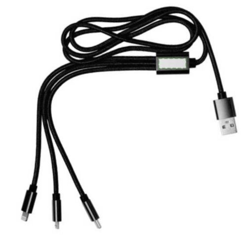 Cavo per la ricarica in nylon, comprende connettori Type C, micro USB e lightning, lunghezza del cavo circa 95 cm