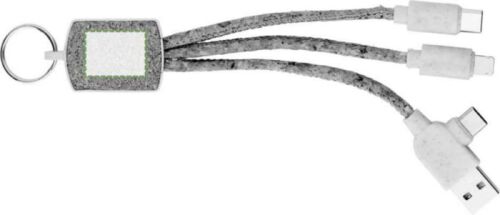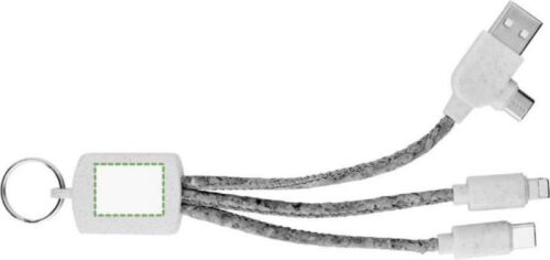 Set cavi per la ricarica 3 in 1 in accaio inox, anello portachiavi, cavo in sughero, prese in paglia di grano, e dettagli in bambù, include connessioni USB-A/C, Lightning, USB-C, confezionati singolarmente in una custodia in carta