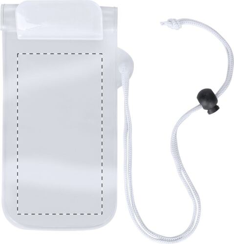 Custodia cellulare impermeabile in plastica con laccino da collo.