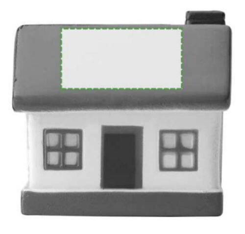 Antistress a forma di casa, in PU. Gli articoli antistress possono essere stampati solo nei colori nero, bianco, oro o argento.