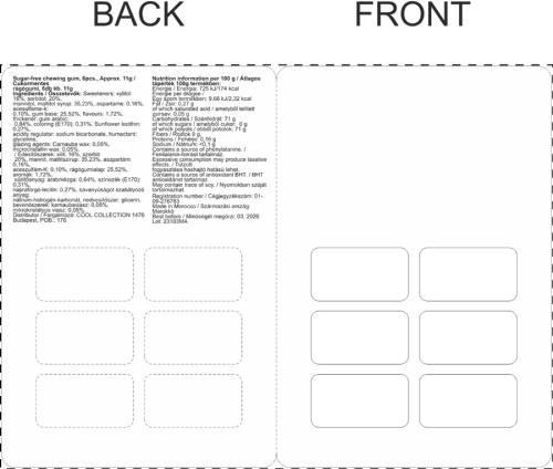 CreaChew Deluxe: blister di 6 gomme da masticare senza zucchero con fascetta in cartoncino stampato a colori. MOQ: 100 pezzi.
