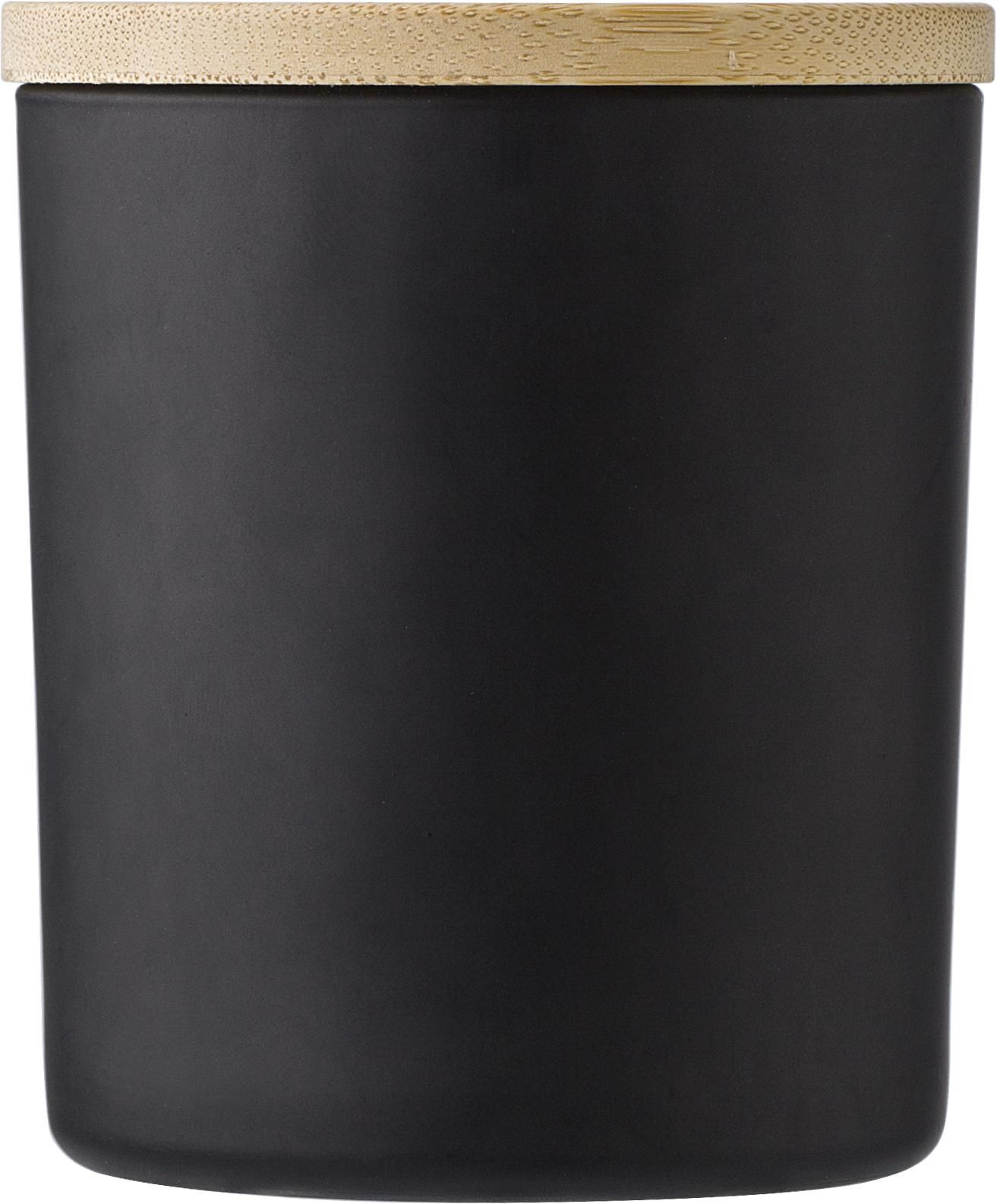 Candela in vetro con cera vegetale e coperchio in bambù, contiene principalmente cera di origine vegetale (cera di carnauba) e ha una durata di circa 46 ore. Quattro profumi a seconda del colore del vetro: cannella (rosso), vaniglia (bianco), legno di sandalo (nero) e gelsomino (verde), confezionata singolarmente in un tubo bianco