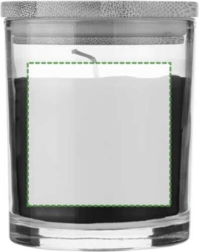 Candela in vetro con 120 grammi di cera colorata e profumo di vaniglia, contenuta in un contenitore di vetro trasparente con coperchio in bambù. Fornisce circa 20 ore di combustione. Confezionata singolarmente in un tubo di cartone bianco.