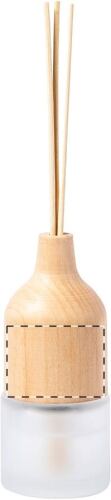 Diffusore di aromi con bottiglia di vetro e tappo in legno. Con 40 ml di profumo alla lavanda e bastoncini diffusori in legno.