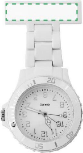 Orologio da infermiera, numerazione colorata in argento e bianco sul quadrante e sull'anello esterno, placca rettangolare con spilla di sicurezza, in ABS