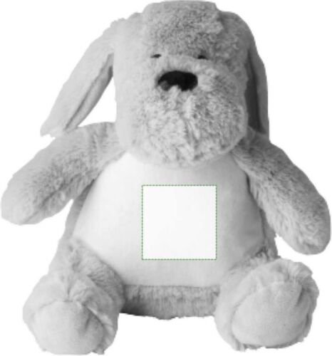 Peluche giocattolo cane, occhi ricamati, coordinabile con l'articolo 5013, include etichetta per la personalizzazione
