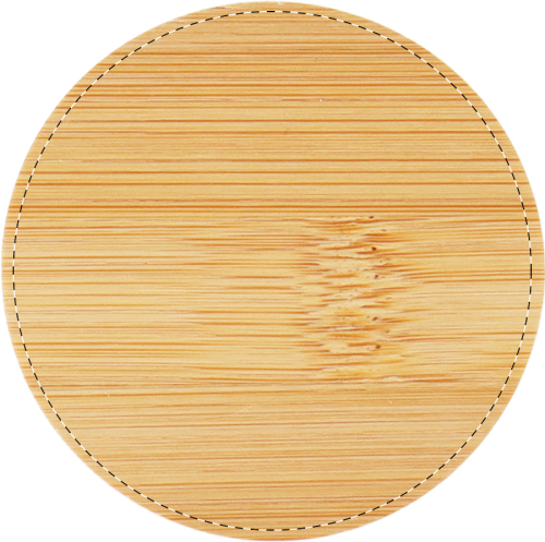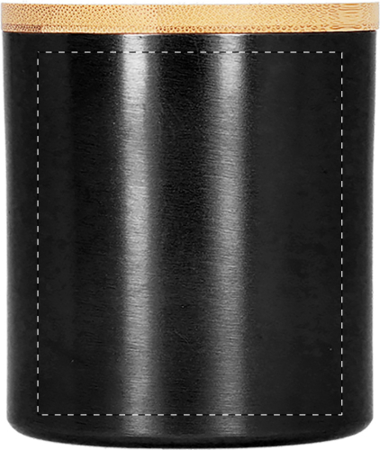 Candela profumata alla vaniglia in contenitore di alluminio con coperchio in bambù.