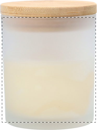 Candela profumata alla vaniglia in vaso di vetro con coperchio in bambù.