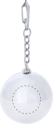 Balsamo per le labbra all'aroma di vaniglia con protezione SPF15, in contenitore rotondo di colore metallizzato e portachiavi in metallo.
