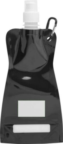 Borraccia pieghevole con moschettone, in PP, tappo con chiusura a tiraggio, si utilizza premendola senza doverla appoggiare alla bocca, capacità 420 ml