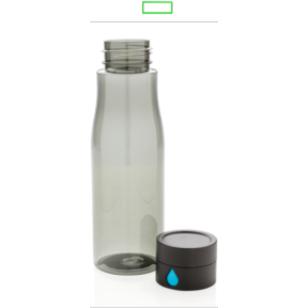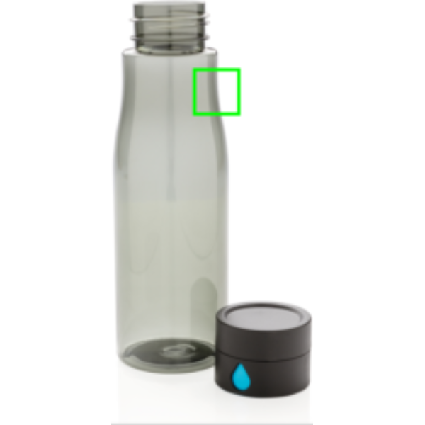 Tieni traccia della tua idratazione quotidiana grazie a questa bottiglia per l'acqua in Tritan dal design intelligente. Sul tappo è rappresentata una goccia d'acqua che si ingrandirà ogni volta che riempirai la bottiglia in modo che tu possa facilmente contare il numero di bottiglie bevute. Non va in lavastoviglie. Capacità 600 ml.