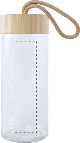 Borraccia da 430ml. in vetro con tappo in bambù e confezione regalo. Non adatta per l'utilizzo con bevande gassate.