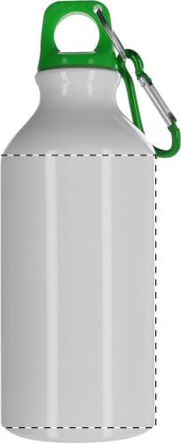 Bottiglia sportiva in alluminio di colore bianco con tappo e moschettone in tinta, 400 ml. Non adatta a bevande gassate.