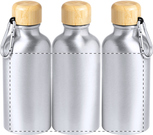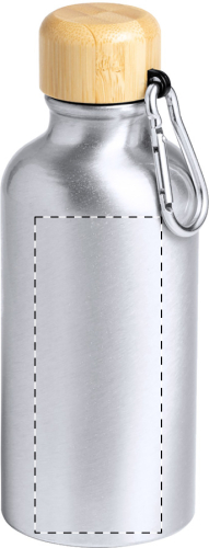 Bottiglia sportiva in alluminio con coperchio in bambù e moschettone, 400 ml. Non adatta a bevande gassate.