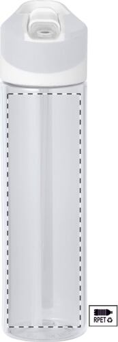 Borraccia da 600 ml. in RPET con tappo e maniglia. Non adatta per l'utilizzo con bevande gassate.