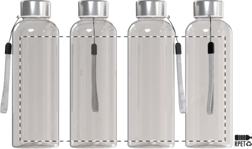 Borraccia da 500ml. in RPET non contenente BPA, con tappo in acciaio e tracolla. Non adatta per l'utilizzo con bevande gassate.