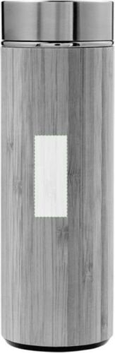 Thermos con rivestimento esterno in bamboo, doppia parete in acciaio inox, include infusore per il tè, capacità 420 ml