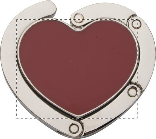 Gancio borsa in metallo a forma di cuore, con chiusura a magnete. Fornito in confezione regalo.