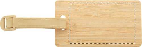 Etichetta per bagagli in bambù con laccetto e fibbia in plastica.