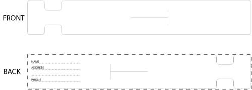 Etichetta per bagagli in carta antistrappo e idrorepellente personalizzabile. Il costo comprende la stampa a colori sul lato anteriore. MOQ: 250 pezzi.