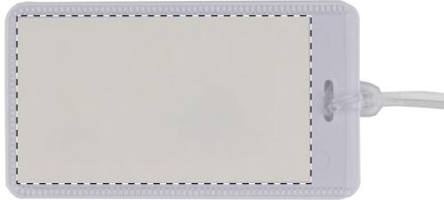Etichette bagaglio in plastica con inserto di carta.