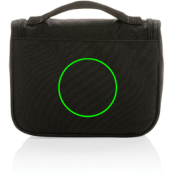 Mantenete l'organizzazione durante i viaggi grazie beauty case in poliestere riciclato Lohan AWARE™. È dotato di uno scomparto principale, 4 scomparti secondari, 2 tasche aperte in rete e 1 tasca interna con cerniera in rete. Inoltre, è dotato di un gancio per poterla appendere facilmente in un luogo opportuno. Viaggiate in modo intelligente e compatto con questo beauty case essenziale. Realizzato in poliestere riciclato al 100% con il tracciante AWARE™. Senza PVC.