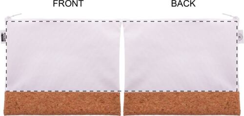 Trousse per cosmetici in poliestere 600D RPET e sughero, personalizzabile con grafica stampata in sublimazione su tutta la superficie e cerniera. MOQ: 50pz.