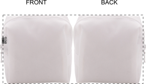 Trousse per cosmetici quadrata in poliestere 600D RPET con stampa in sublimazione su tutta la superficie e zip. MOQ: 50pz.