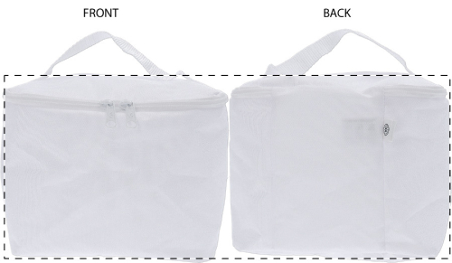 Trousse in poliestere 600D RPET con cerniera, maniglia, grafica stampata in sublimazione su tutta la superficie ed etichetta RPET. MOQ: 50 pezzi.