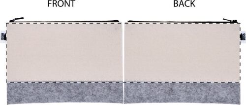 Trousse per cosmetici in feltro RPET con grafica stampata in sublimazione su tutta la superficie, cerniera ed etichetta RPET. MOQ: 50 pezzi.