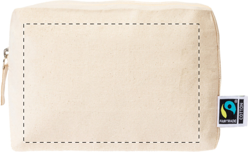Trousse per cosmetici in 100% cotone equosolidale da 180 g/m² con cerniera ed etichetta Fairtrade.