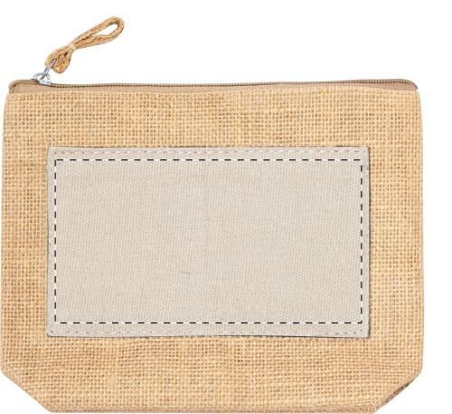 Pochette per cosmesi in juta e cotone laminato, chiusa da una cerniera.