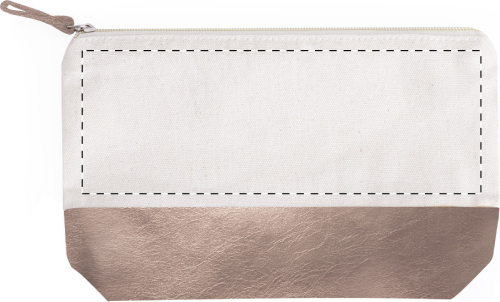 Pochette bicolore in cotone e pelle PU metallizzata chiusa da una cerniera.