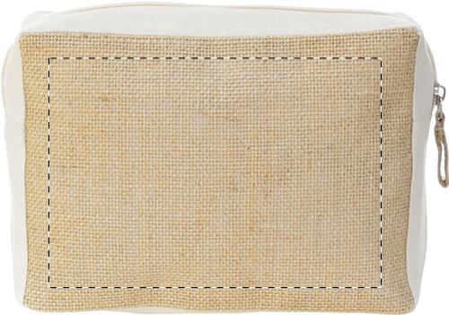 Trousse per cosmetici in cotone e juta laminata, con cerniera.