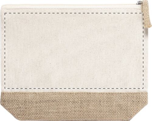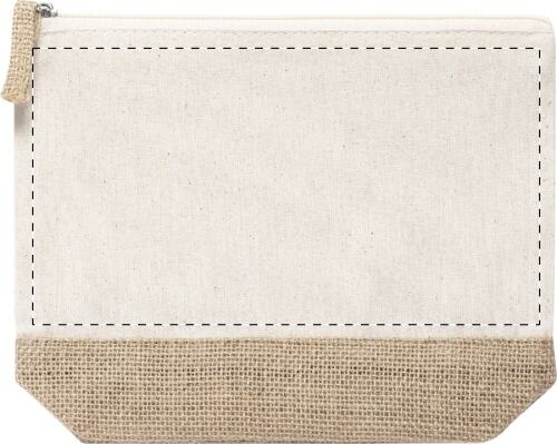 Trousse per cosmetici in cotone e juta laminata, con cerniera.
