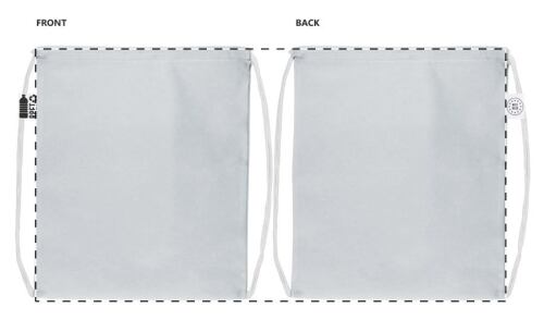 Sacca per bambini in poliestere 190T RPET con chiusura a coulisse e cordini colorati. Grafica stampata in sublimazione su tutta la superficie. MOQ: 25 pezzi.