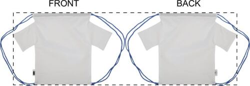 Sacca in poliestere 190T RPET a forma di maglietta personalizzabile, con chiusura a coulisse, cordoncini colorati e grafica stampata in sublimazione su tutta la superficie. MOQ: 25 pezzi.