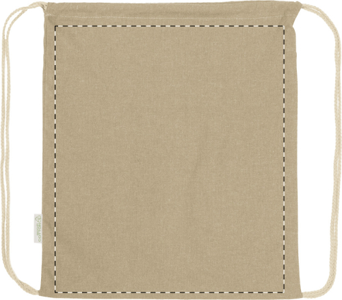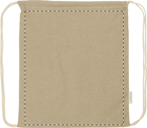 Borsa con chiusura a coulisse in 70% cotone riciclato e 30% poliestere RPET, 140 g/m² ed etichetta cotone riciclato.
