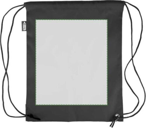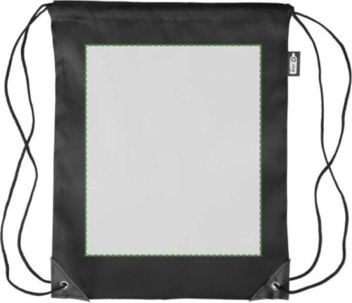 Zaino con chiusura a coulisse in poliestere rPET 210D con due angoli in PU neri sul davanti e cuciture interne. Presenta un cordino in nylon nero su ogni lato, una chiusura a cordino. Capacità: 5 l. Capacità di trasporto: 7 kg. Include etichetta rPET.