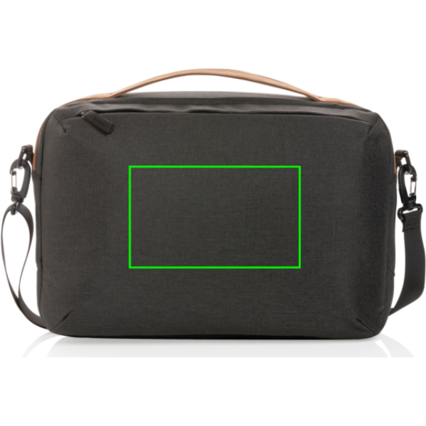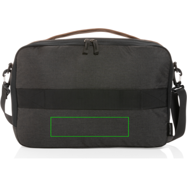 Sentiti a tuo agio sia dentro che fuori dall'ufficio con questa borsa porta PC dal design minimalista dall'aspetto elegante. Lo scomparto principale ha un alloggio per laptop da 15,6 pollici e due tasche a rete. Tasca frontale con cerniera. Sulla parte superiore puoi trovare una maniglia in PU. Il materiale esterno e la fodera sono realizzati con poliestere riciclato. Con tracciante AWARE™ che convalida l'uso reale di materiali riciclati. Ogni borsa ha riutilizzato 8,75 bottiglie in PET da 0,5 litri. Il 2% del ricavato di ogni prodotto Impact venduto sarà devoluto a Water.org.