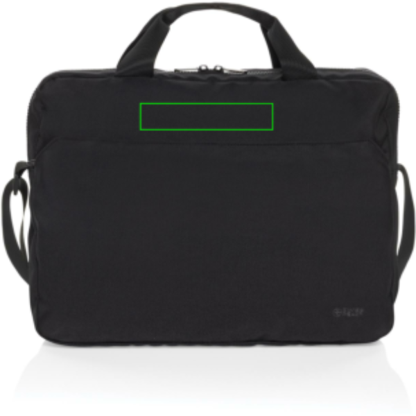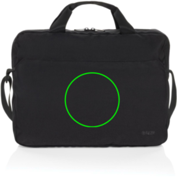 Portate con voi la tecnologia con stile grazie alla borsa porta PC da 15,6″ Essential Swiss Peak in rPET Aware™. Realizzata al 100% in rPET, questa elegante borsa è dotata di uno scomparto principale con una sezione dedicata al laptop che si adatta in modo sicuro ai moderni computer portatili da 15,6″. Comprende anche una tasca frontale con cerniera per gli accessori, due manici in nastro e una tracolla regolabile e rimovibile (120 cm) con fibbie per facilitare il trasporto. Il logo Swiss Peak tono su tono sulla parte anteriore aggiunge un tocco di eleganza al suo design funzionale. Realizzata in poliestere riciclato con il tracciante AWARE™. Il 2% del ricavato di ogni prodotto venduto con AWARE™ sarà devoluto a Water.org. Senza PVC