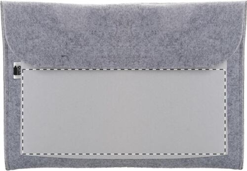 Custodia per computer portatile in feltro RPET personalizzabile, con tasca frontale stampata a colori, chiusura in velcro ed etichetta RPET. Adatto per computer portatili fino a 15". Il costo include la stampa in sublimazione. MOQ: 25 pezzi.