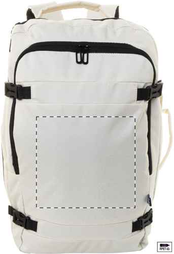 Zaino e borsa portadocumenti in poliestere 600D RPET con 2 scomparti e tasca frontale chiusi da cerniera, scomparto imbottito per laptop (15"), tasca antifurto, tracolla, schienale e spallacci imbottiti ed etichetta RPET.
