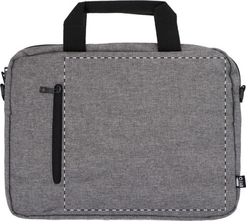 Borsa portadocumenti in poliestere 600D RPET con cerniera sulla tasca principale, tracolla regolabile, fascia trolley, scomparti imbottiti per laptop (15") e tablet (10").