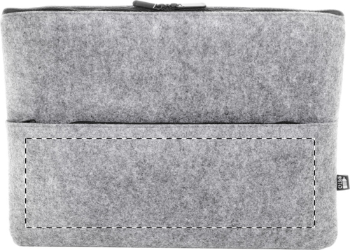 Borsa per notebook in feltro RPET con scomparto chiuso da cerniera e tasca frontale. Adatta a computer portatili fino a 15”. Con etichetta distintiva RPET.