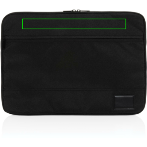 Proteggi con eleganza il tuo computer portatile da 15.6" grazie a questa tasca con apertura frontale dal design elegante. Realizzata in poliestere riciclato 300D. Include tracciante AWARE™ che garantisce l'uso genuino di materiali riciclati. Ogni tasca ha riutilizzato 9,5 bottiglie in PET. Il 2% del ricavato di ogni prodotto Aware™ venduto sarà devoluto a Water.org.