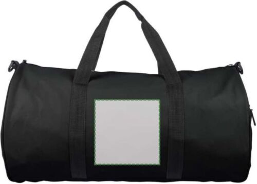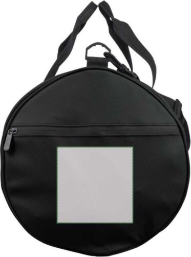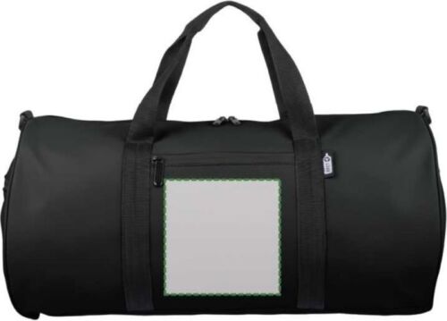 Borsa da viaggio rPET realizzata in poliestere 600D con fodera 210D e rivestimento in PU idrorepellente, dotata di ampio scomparto principale con zip, piccola tasca frontale con zip a scopo decorativo, ulteriore piccola tasca laterale con zip e tasca laterale in rete, dotata di due manici e tracolla regolabile, capacità 40 litri, con etichetta rPET esterna
