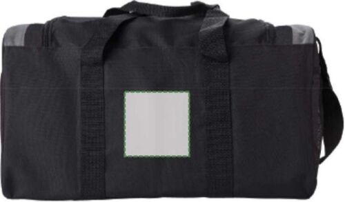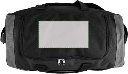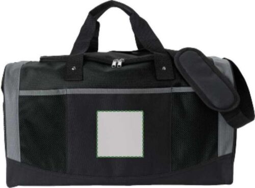 Borsone sportivo in poliestere 600 D, manici corti, tracolla regolabile, ampio scomparto con chiusura lampo, tasca laterale in rete, 3 tasche frontali, fondo rinforzato