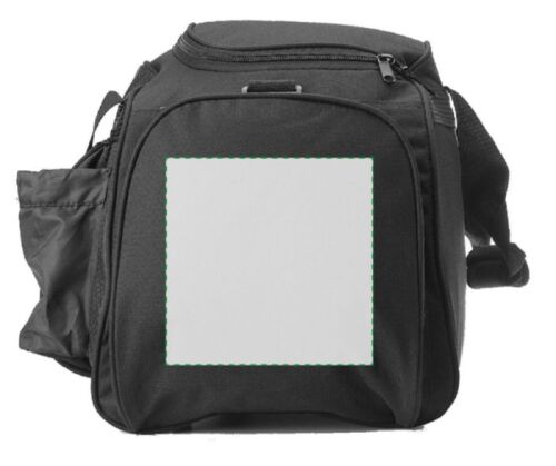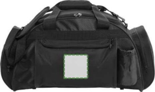 Borsone sportivo/viaggio, ampio scomparto centrale, tasca anteriore con chiusura lampo, vani laterali per bottiglia e cuffia, in poliestere 600 D