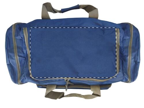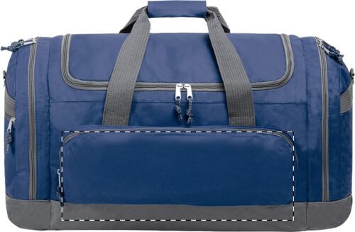 Borsone sportivo in poliestere 600D, con scomparti multipli, cerniera e tracolla regolabile.